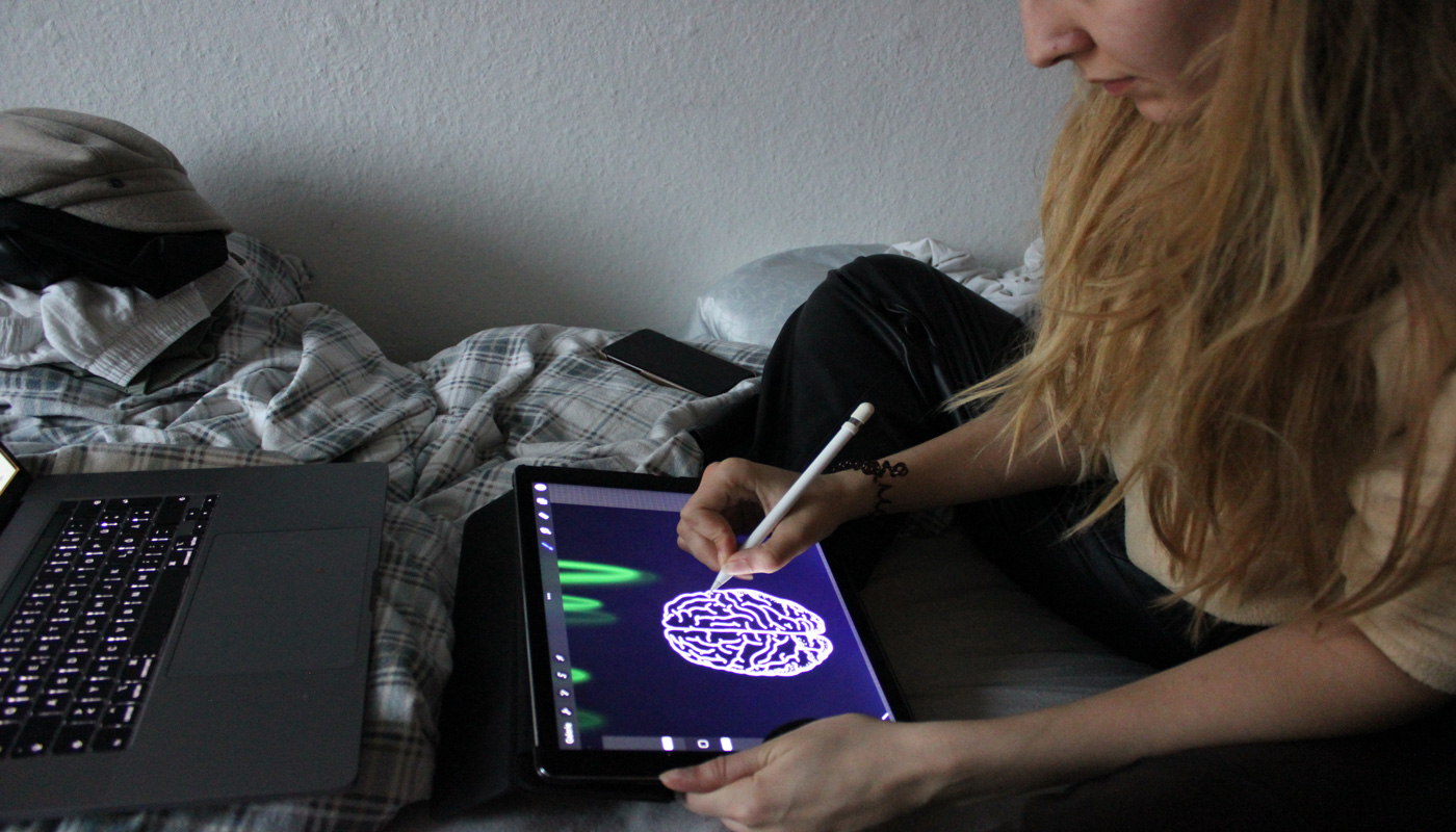 Der Ausgangspunkt unserer Ausstellung war das Semesterthema lautleise. Unser Projekt behandelt dabei gesellschaftliche und biologische Aspekte von Klängen und soll auf die Komplexität und vielfältigen Möglichkeiten von Sound, Klängen und Geräuschen in menschlichen Körpern aufmerksam machen. Dabei sind Aspekte wie informatives Lernen und künstlerisch abstrakte Wahrnehmung sowie freie Interpretation miteinander verknüpft. Wir geben mit dieser Ausstellung unseren Körpern einen Klang. In unserer Recherche haben wir herausgefunden wie Gehirnwellen gemessen werden, wie unterschiedlich jeder Mensch biologisch aufgebaut ist und wie man gemessene Werte mit verschiedenen Komponenten wie Farben und Tönen verknüpft.