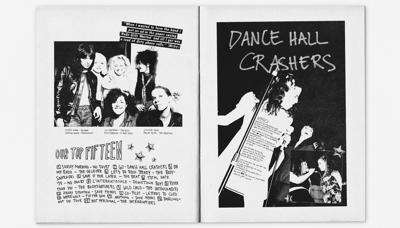 Zines bieten die Möglichkeit, den eigenen Interessen und Idolen eine Plattform zu bieten. Diese Seiten sind Lieblingssongs und -bands gewidmet. Einen Songtext der Dance Hall Crashers haben wir auf eines ihrer Bilder geschrieben.