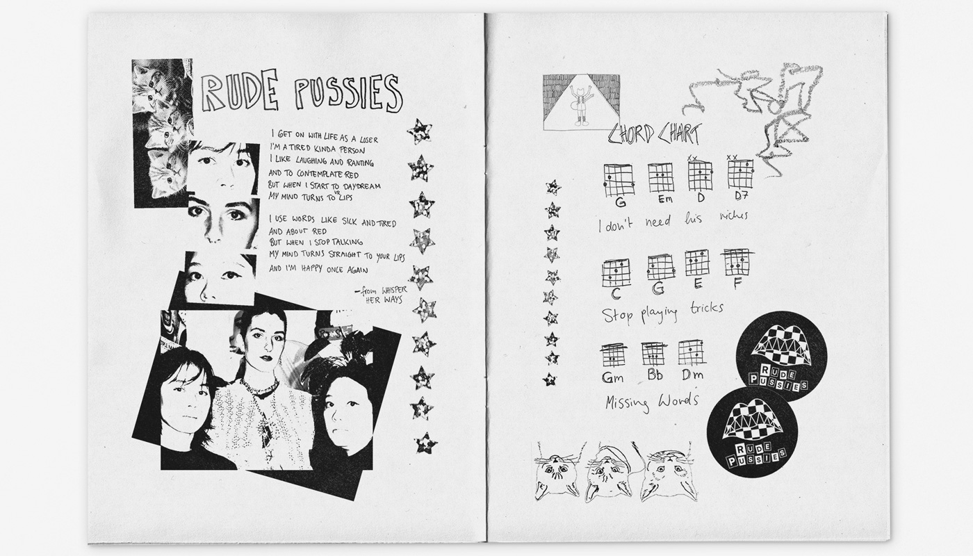 Diese Seite ist unserer, am Anfang des Semesters entstandenen, fiktiven Band „Rude Pussies“ gewidmet. Wir haben ein Gruppenfoto aufgenommen und eine Chord Chart für ein paar Songs unserer Band erstellt. Zines animieren dazu, selbst kreativ zu werden. Ob durch Musik oder durch ein eigenes Zine - jede Form der kreativen "Auslebung" ist erwünscht und dazu wollen wir auch mit unserem Zine aufrufen.