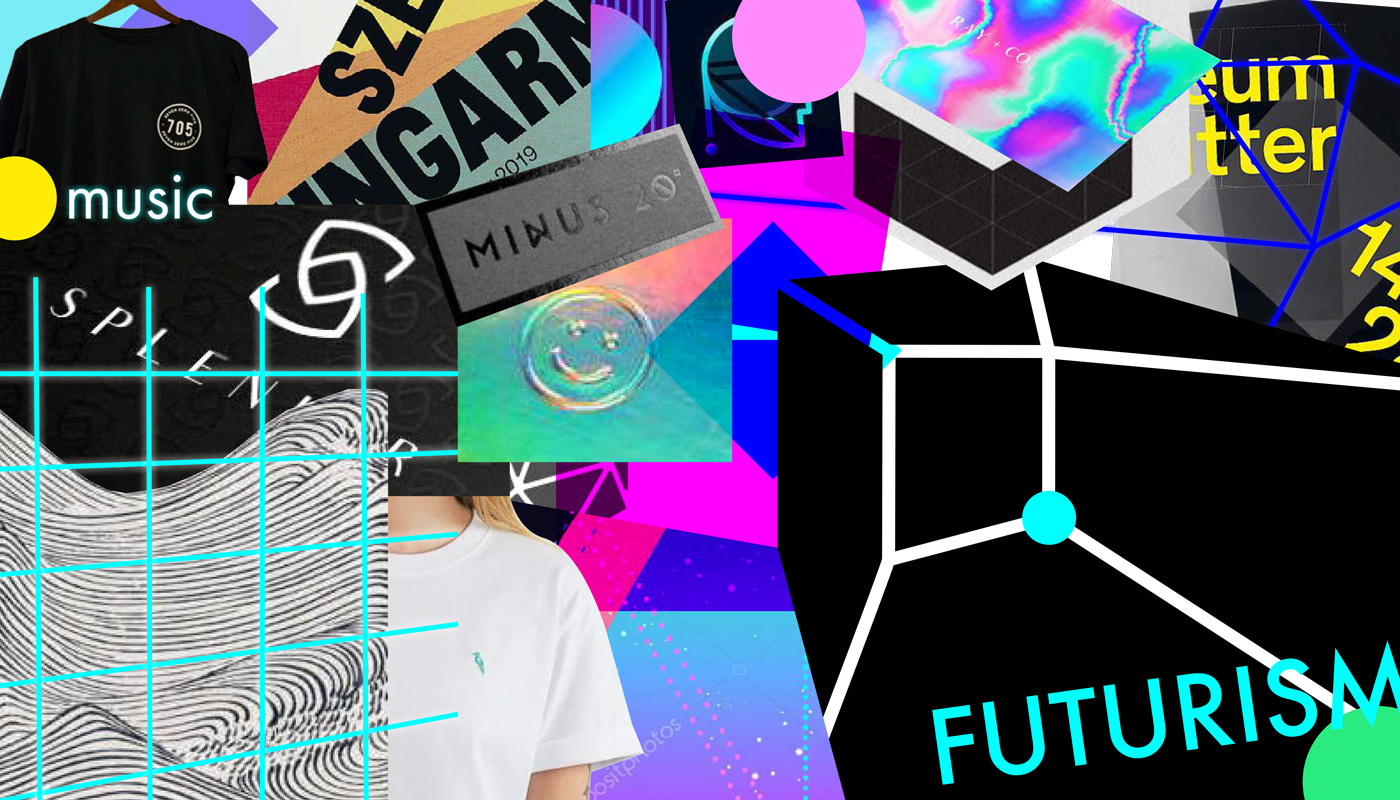 Ein wichtiger Bestandteil einer Ausstellung ist selbstverständlich das Kommunikationsdesign. Durch welche Mittel können die Rezipienten angesprochen werden und welche Stimmung soll vermittelt werden? Letztere Frage haben wir mit einem Moodboard beantwortet. In diesem wird deutlich, dass eine futuristische und farbenfrohe Gestaltung wesentlich ist für unsere Ausstellung. Jedoch sind uns minimalistische Details ebenso wichtig. Außerdem sind geometrische Formen und Linien ausschlaggebende Charakteristiken, die wir integriert haben. Dies spiegelt sich vor allem in unserem Logo wieder, das vom Raumkonzept abgeleitet ist. Durch das aufnehmen der bereits bekannten Form in ein anderes Medium, entsteht ein Wiedererkennungseffekt beim Rezipienten. Deswegen haben wir uns auch dafür entschieden, unsere Visitenkarten und T-Shirts hauptsächlich mit dem Logo zu gestalten. Die Quintessenz unserer kommunikativen Gestaltung haben wir in einem Styleboard zusammengefasst.