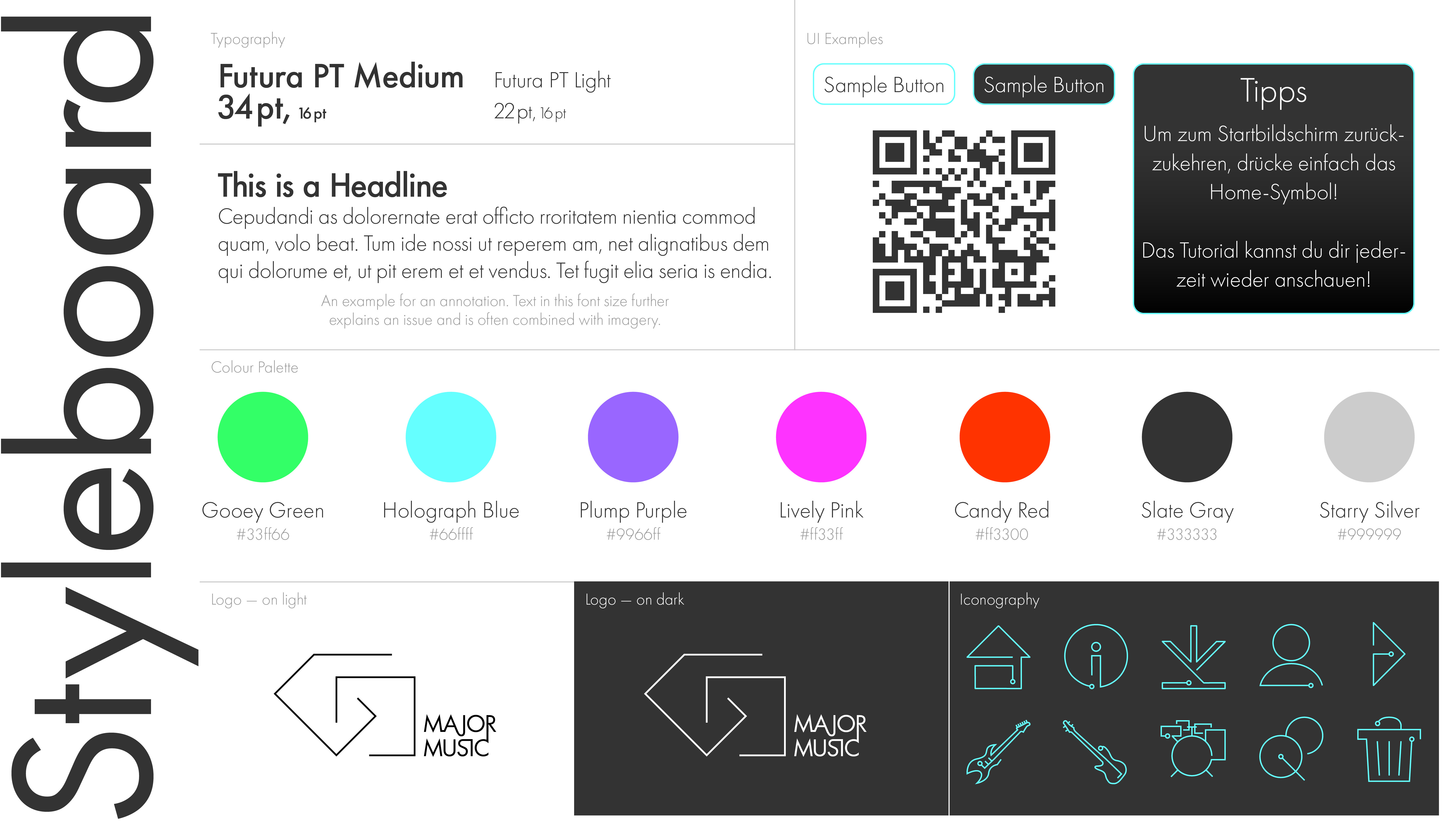 Das Ausstellungskonzept Lautleise: Major Music behandelt prägende Musik Richtungen des letzten Jahrhunderts mit dem Fokus auf Song Building. Für die Ausstellung wollen wir uns mit verschiedenen Musik Genres und dem allgemeinen Komponieren von Liedern beschäftigen, so dass der Besucher schlussendlich mit dem vereinten Wissen ein Song bauen kann.